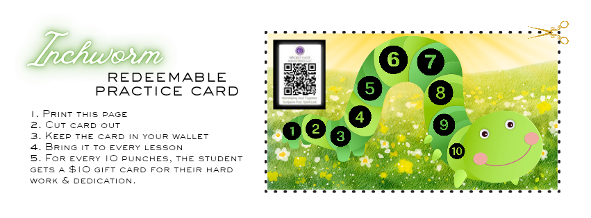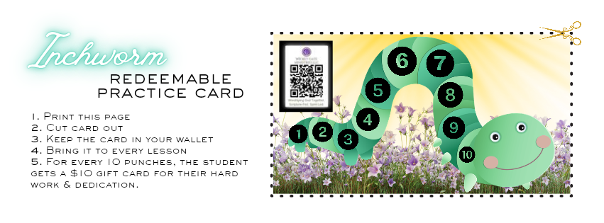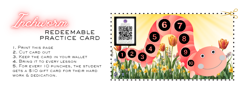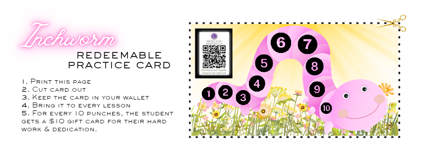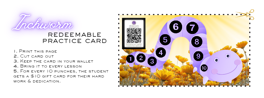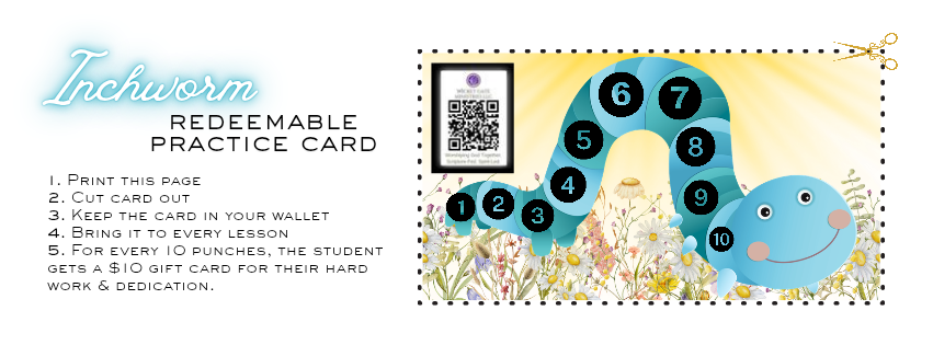 Each student will need a standard-sized 3-ring binder with lined paper in it, a sharpened/mechanical pencil, and any learning materials discussed prior to or during the lesson(s). For kiddos, please remember to bring their “Inchworm Redeemable Practice Card” .
